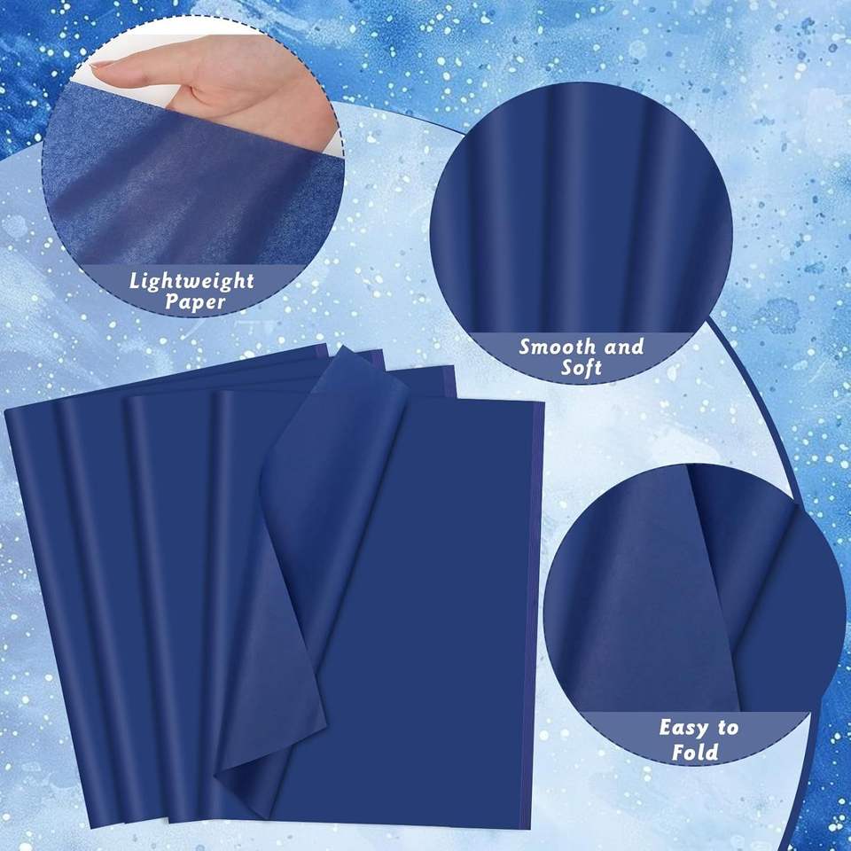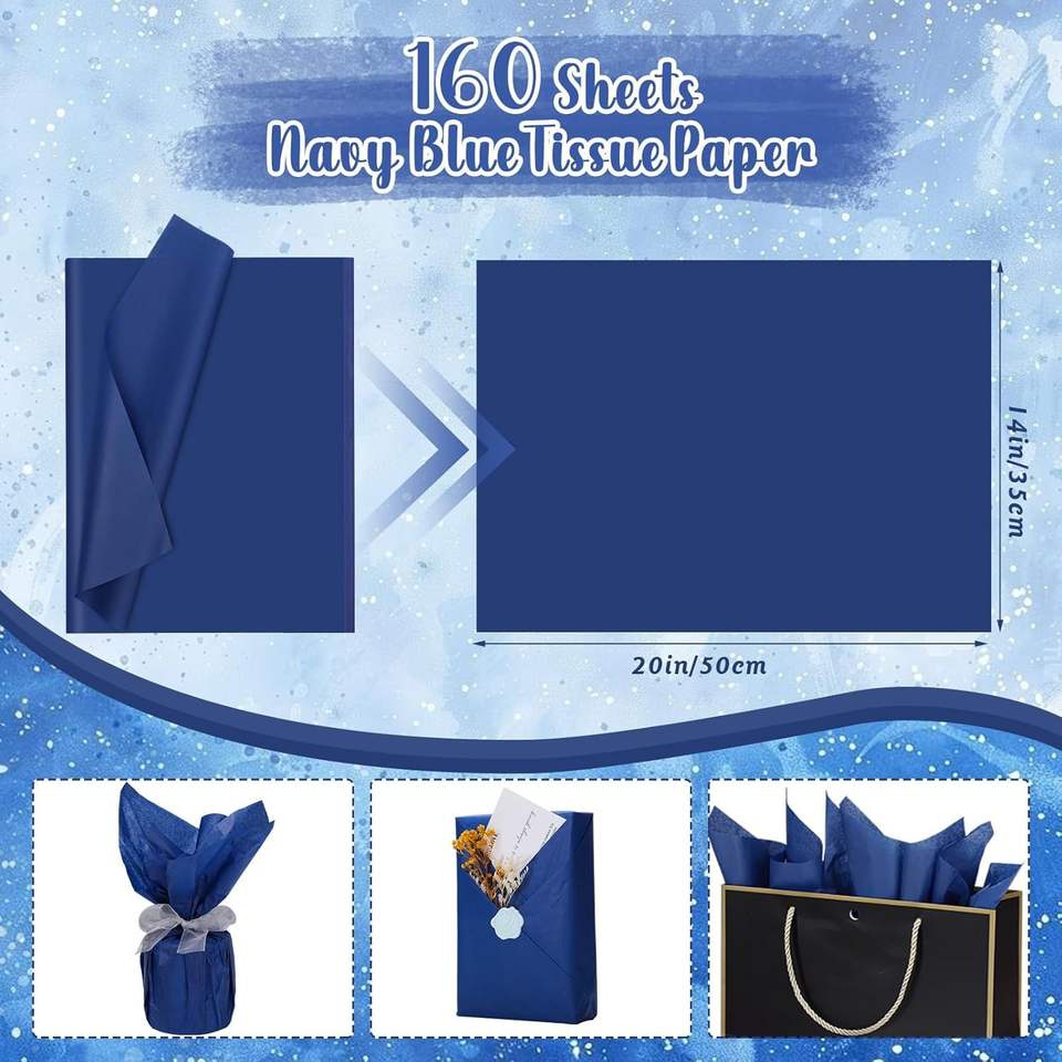 Paquete de 20 Bolsas de Regalo de Papel de Seda Azul de 14 Pulgadas, 160 Hojas, Color Azul Marino, para Manualidades, Envoltura de Regalos de Navidad