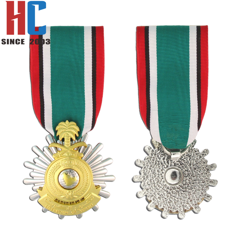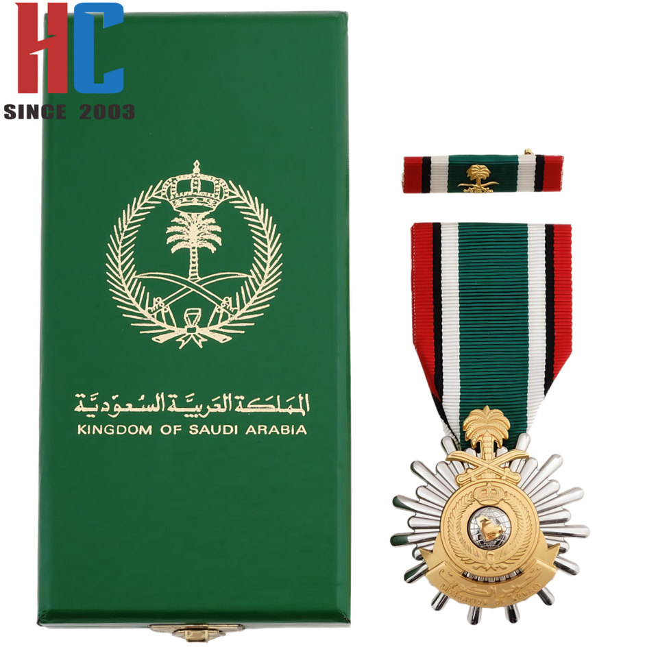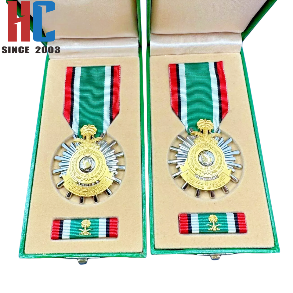Medalla del Premio de Liberación de Kuwait Saudita personalizada de fábrica de 20 años con barra de cinta en estuche verde original