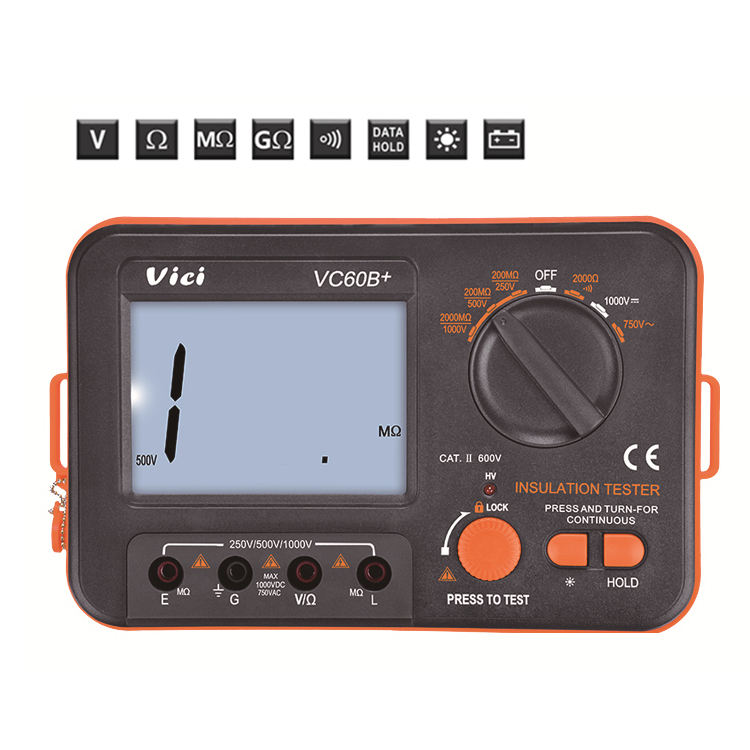 Medidor de Resistencia de Aislamiento VC60B+ para Tierra - Probador de Ohmios de Seguridad