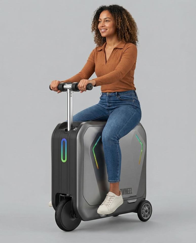 Maleta Scooter Eléctrica Inteligente de 20 Pulgadas con Asiento, Equipaje de Mano con Motor Eléctrico, Scooter Eléctrico con Ruedas