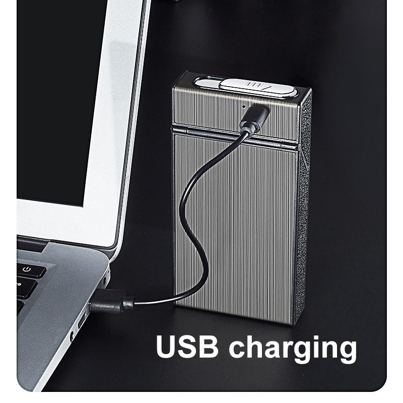 Dericsson Logotipo personalizado Caja de cigarrillos luminosa portátil para fumar con encendedor eléctrico Diseño clásico de Metal de alta calidad