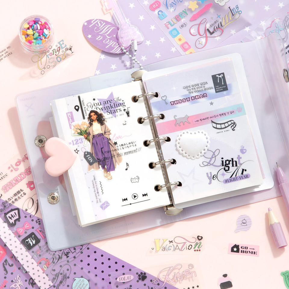 20 hojas por paquete, libro de pegatinas de texto laminado plegable, Material ilustrado en inglés, manual, pegatinas de decoración