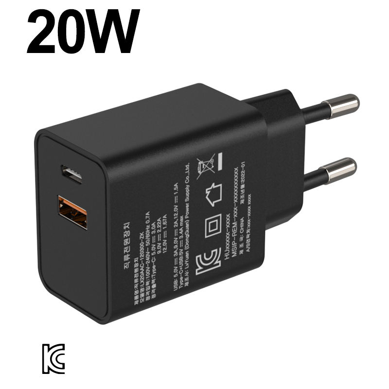 Cargador de Pared USB de 20W con 2 Puertos, QC3.0, PD Tipo-C, Carga Rápida, Ecológico, para Teléfonos Inteligentes