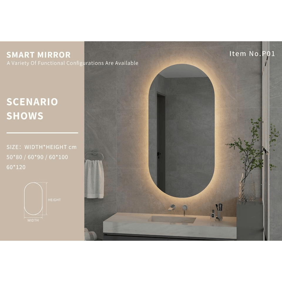 Espejo LED Rectangular de Baño de 20x28 Pulgadas para Montar en la Pared, Antivaho y Antirrotura, con Marco de Vidrio Templado, Características Combinadas M
