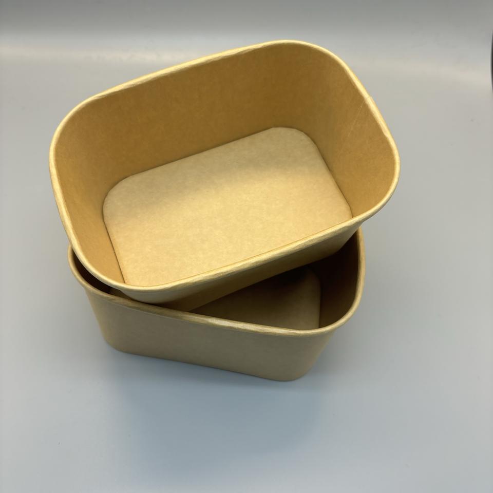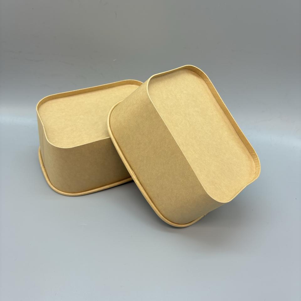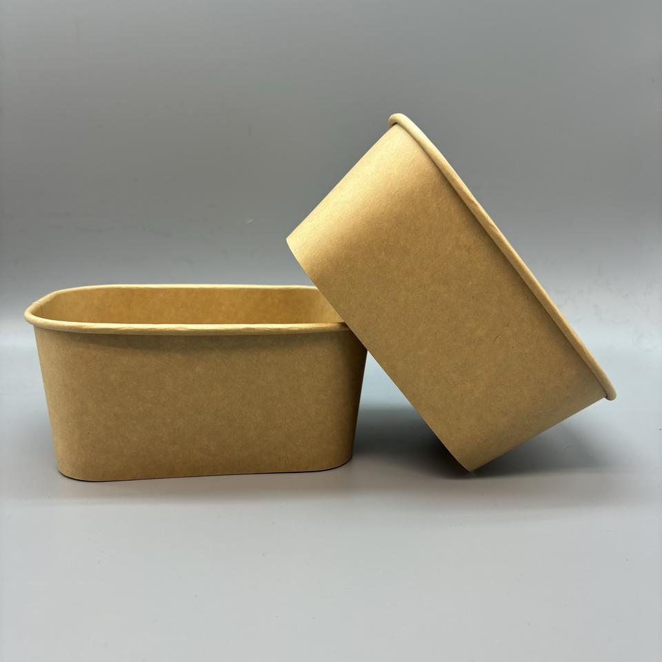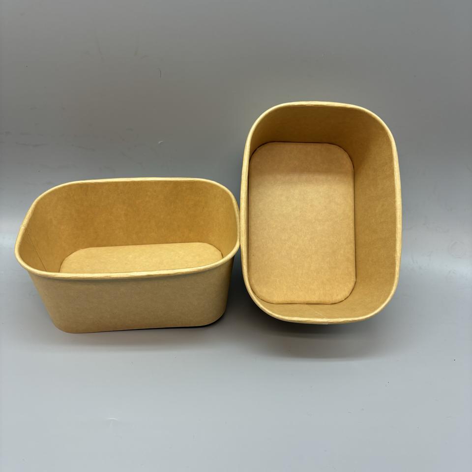 200 300 ml Rectangular Helado Papel Caja de embalaje de alimentos Contenedor de comida para llevar desechable Cuadrado Tazón de papel para sacar con tapa