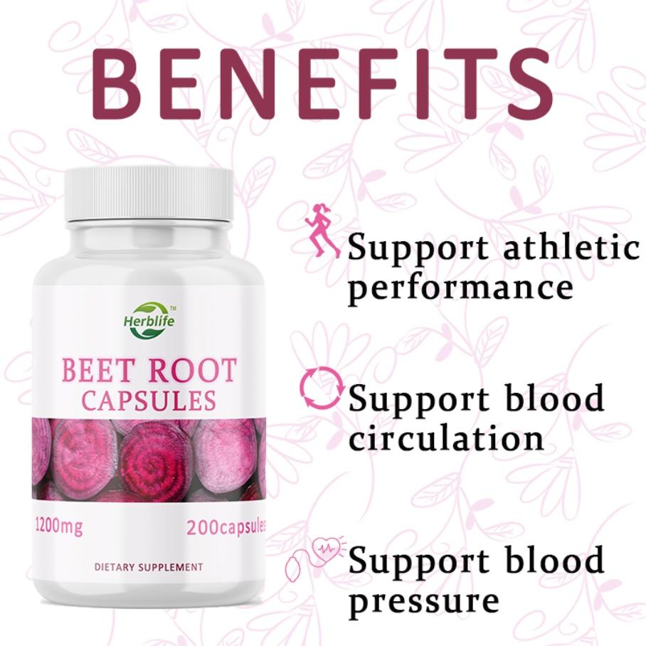 200 Cápsulas de Remolacha para Apoyar la Presión Arterial y el Rendimiento Deportivo (Puro, Sin OMG y Sin Gluten)