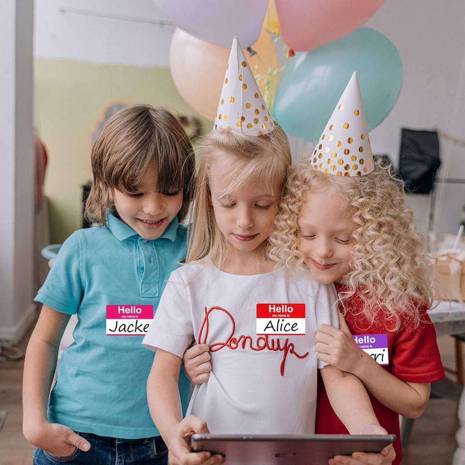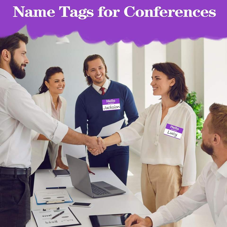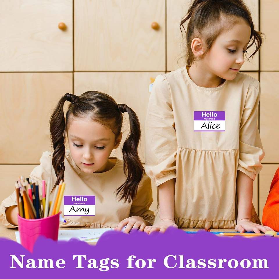 200 Etiquetas de Papel Rectangulares Laminadas con Nombre, Pegatinas Adhesivas Moradas con la Frase 'Hola, Mi Nombre Es', para Oficina/Escuela/Profesores/Correo (35" X