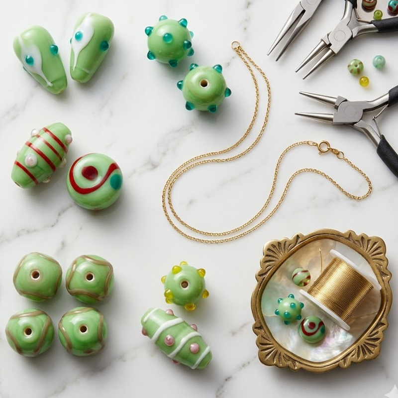 200 Piezas de Cuentas de Vidrio Turquesa Hechas a Mano al por Mayor | Cuentas Decorativas de Varios Tamaños y Formas para Joyería, Pulseras y Manualidades