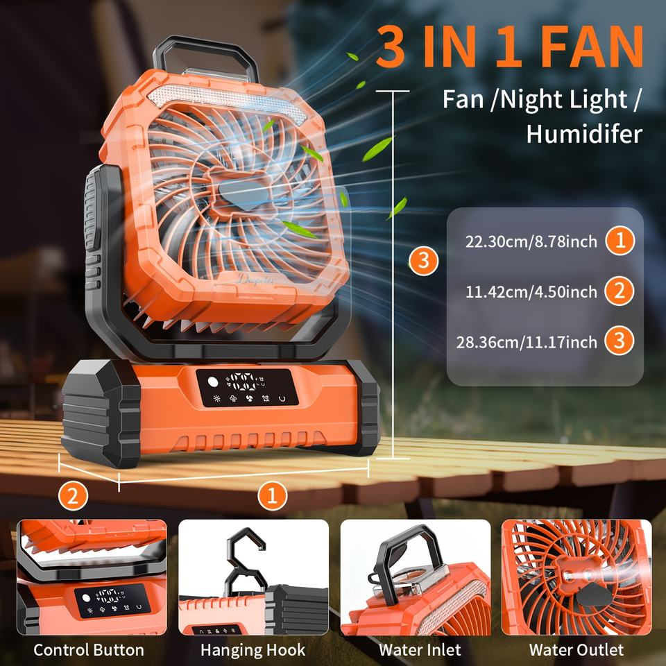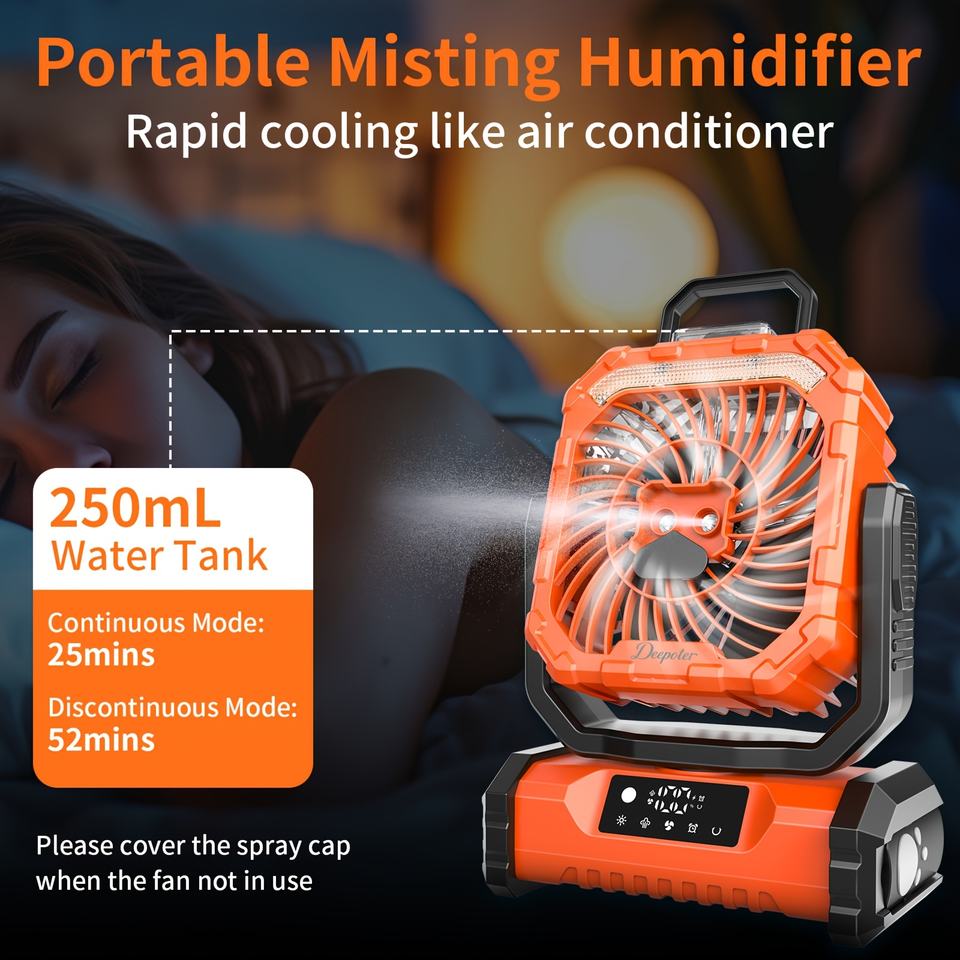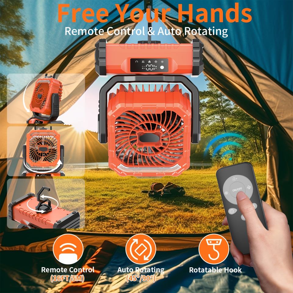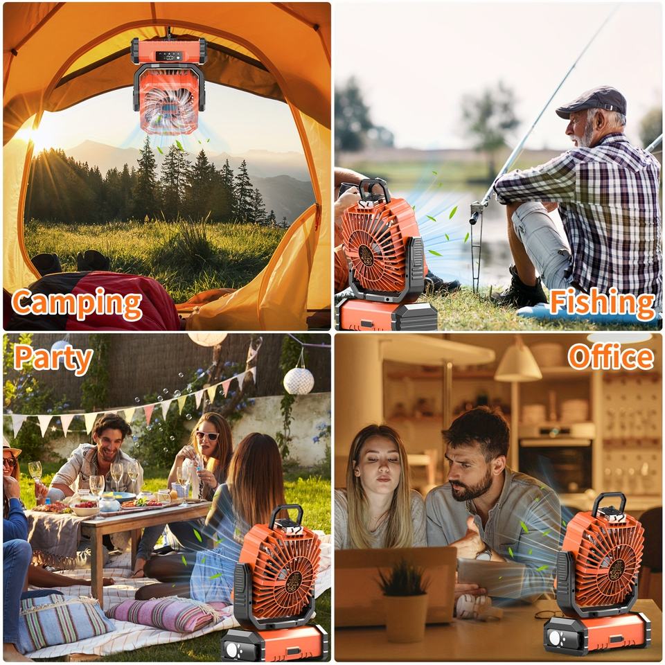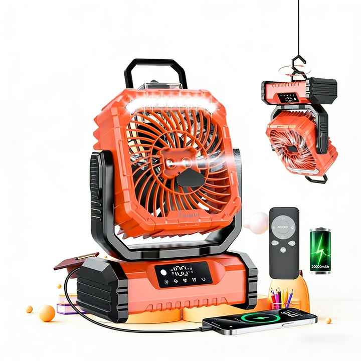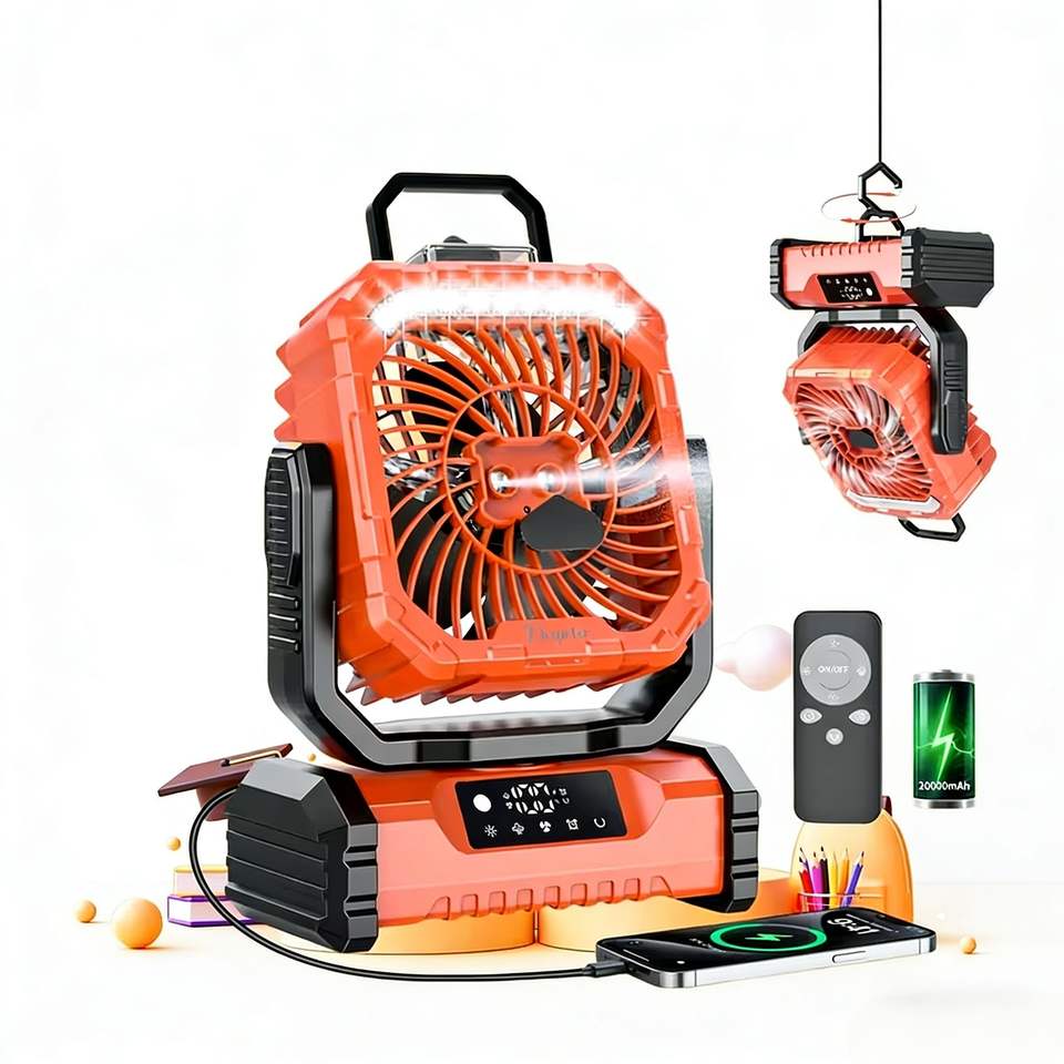 Ventilador Portátil Recargable de 20000mAh con Luz LED, Control Remoto, Interfaz USB de Plástico y Banco de Energía Integrado para Acampar al Aire Libre