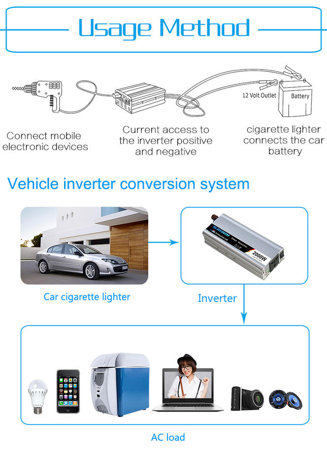 Inversor de Corriente Solar para Automóvil de 2000 W, Convertidor de CC de 12 V a CA de 110 V/220 V, Adaptador USB para Automóvil, Cargador para Automóvil