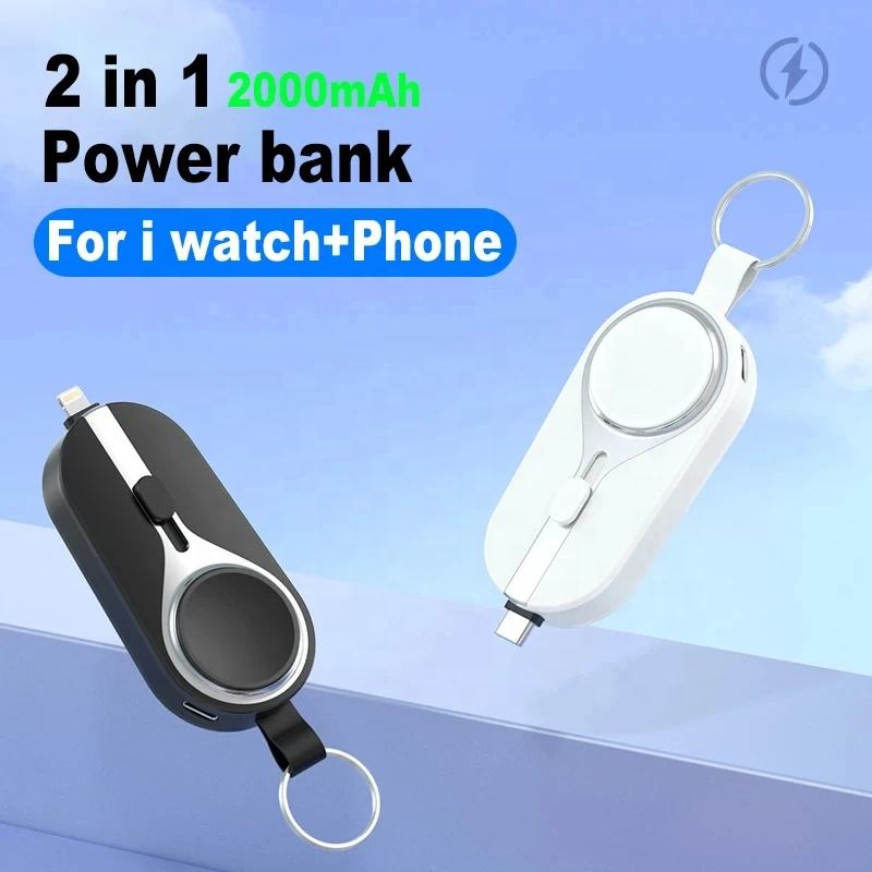 Mini banco de energía de 2000mAh para Apple Watch, cargador de teléfono móvil, batería externa portátil para iPhone 11 12 13 14, Banco de energía de repuesto