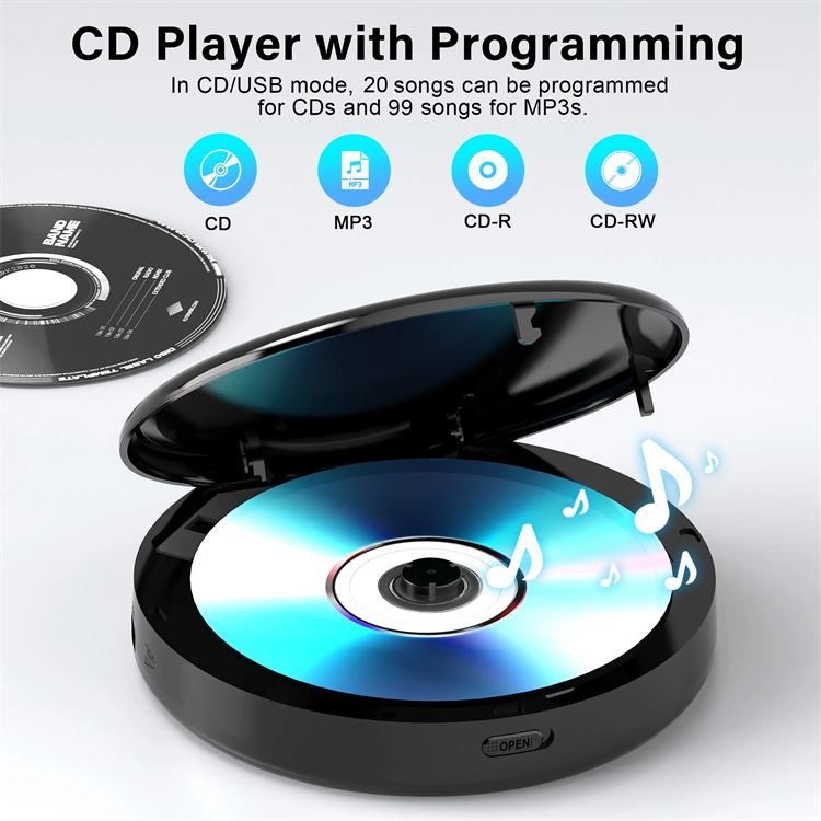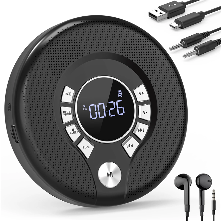 Reproductor de CD BT recargable de 2000mAh, reproductor de CD personal compatible con coche portátil