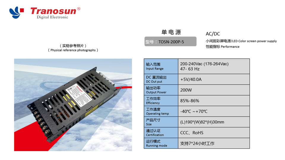 Controlador de 200W 5V 40A A | Fuente de alimentación conmutada de TOSN-200P-5 para pantallas de pared LED profesionales