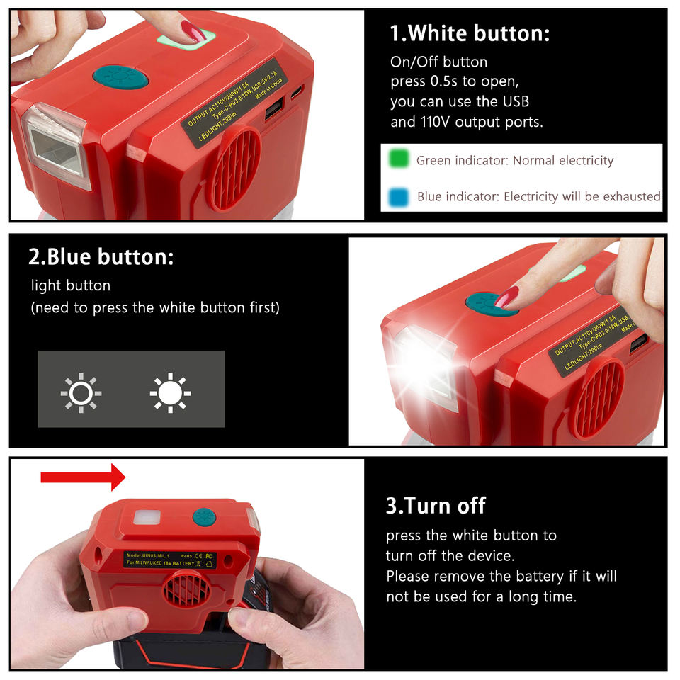 Inversor de Corriente Portátil de 200W para Cargador de Batería de Litio Milwauke de 18V, Adaptador de Inversor