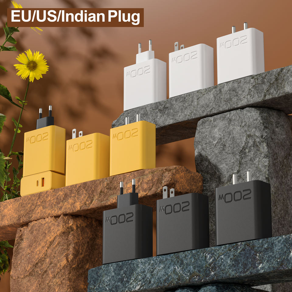 Cargador de pared de 200W, cargador USB C de doble puerto, adaptador de corriente de enchufe EU/US/IN para Samsung IPhone 12 Xs X 8 8 Plus 7 6S