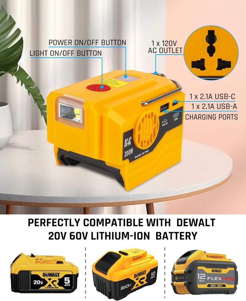 Inversor de Onda Sinusoidal Modificada Portátil de 200 Vatios, Generador, Convertidor para Batería Milwaukee con Cargador USB