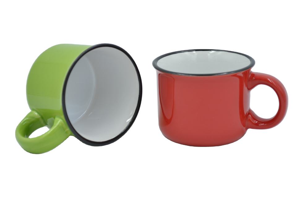 Taza de cerámica con forma de esmalte, minitaza de cerámica con borde negro brillante, promoción de 200ml