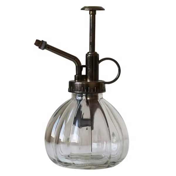 Mister de agua para plantas de vidrio acanalado de estilo vintage de 200ml con bomba superior ABS de Color negro plateado dorado (capacidad total 230ml)