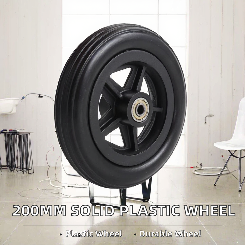 Rueda de Poliuretano Sólido de 200 mm (8 Pulgadas) para Uso Industrial, Sin Freno, Sin Protectores de Rosca