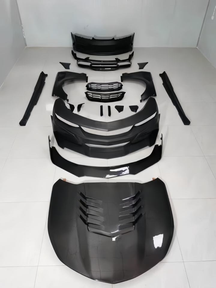 Kit de Carrocería Estilo Transformers 2011-2017 para Chevrolet Camaro, Parachoques Delantero, Faldones Laterales, Parachoques Trasero, Capó de Fibra de Carbono, Alerón Trasero