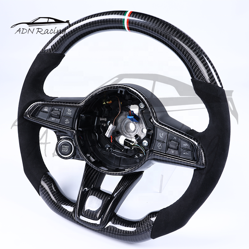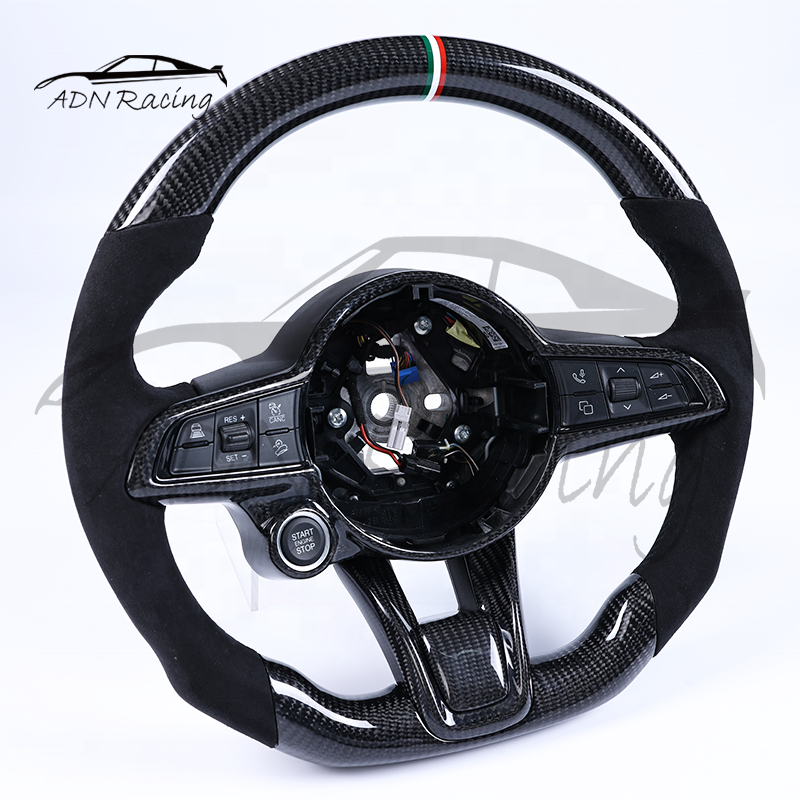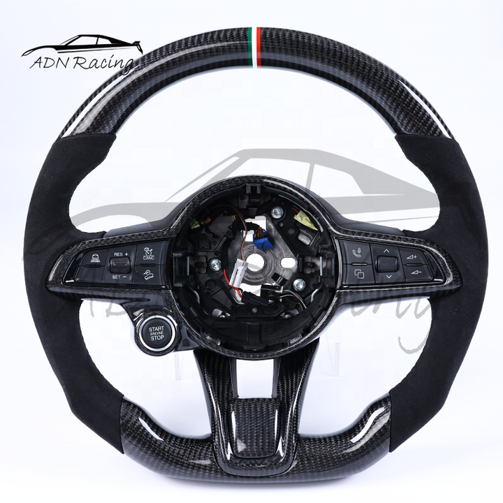 Volante Personalizado de Fibra de Carbono y Alcántara Italiana para Alfa Romeo Giulia QV Stelvio 2015-2020 con Botón de Encendido