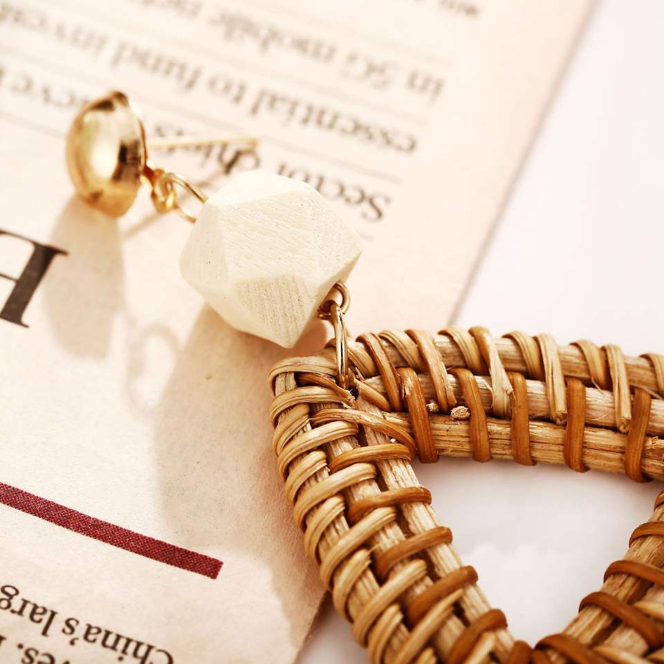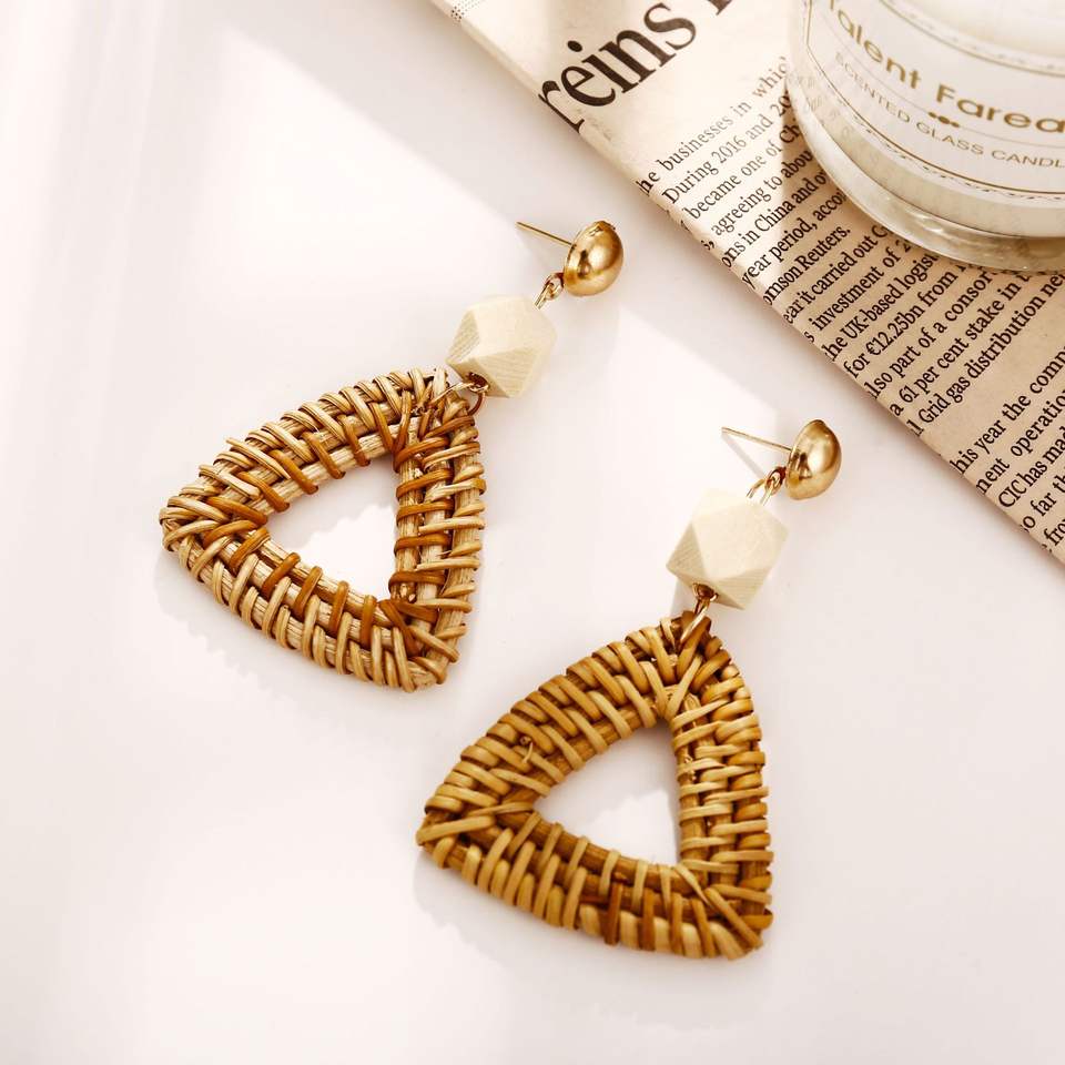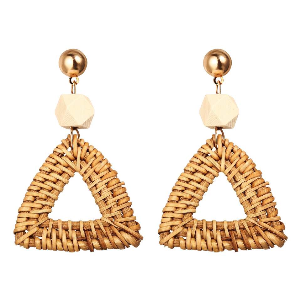 2019 Venta caliente de madera Triangular tejido marrón café color de protección del medio ambiente pendientes