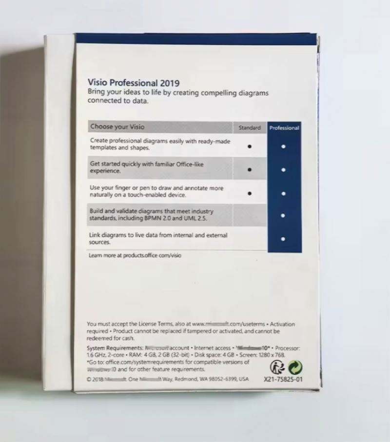 Paquete de Software Visio Professional 2019 USB FPP, Activación en Línea, Garantía Personalizada, Envío Gratuito