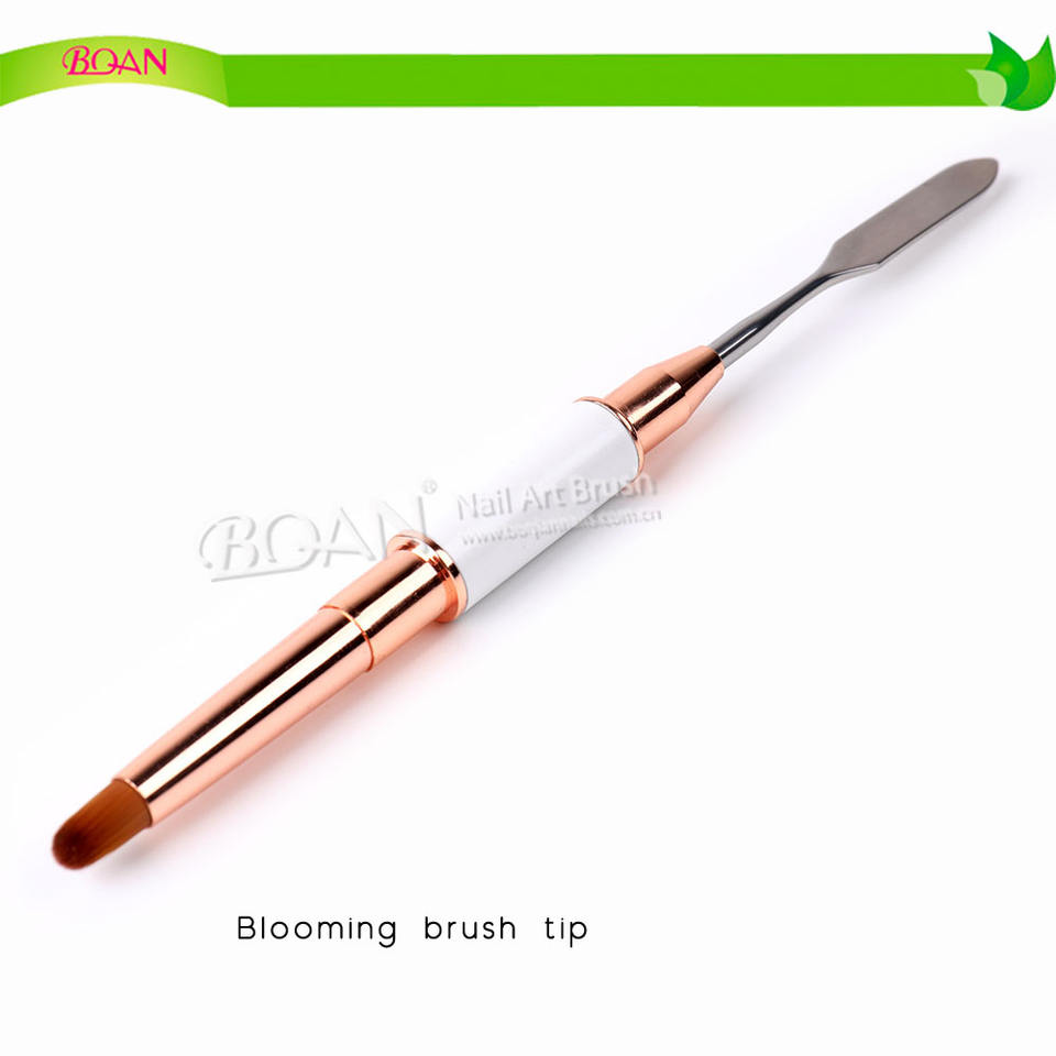 2019 de oro blanco y rosa personalizado manicura flor cepillo de uñas con espátula herramienta cepillo