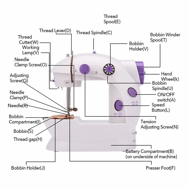 Máquina de Coser Multifuncional 202 con Luz Nocturna, Pedal, Portátil, Doméstica, Pequeña y Eléctrica
