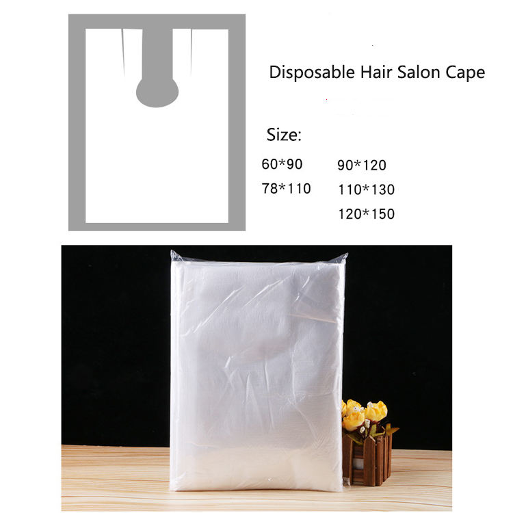 Nombre:Plástico PE Barber Cape Cabo de corte de pelo desechable