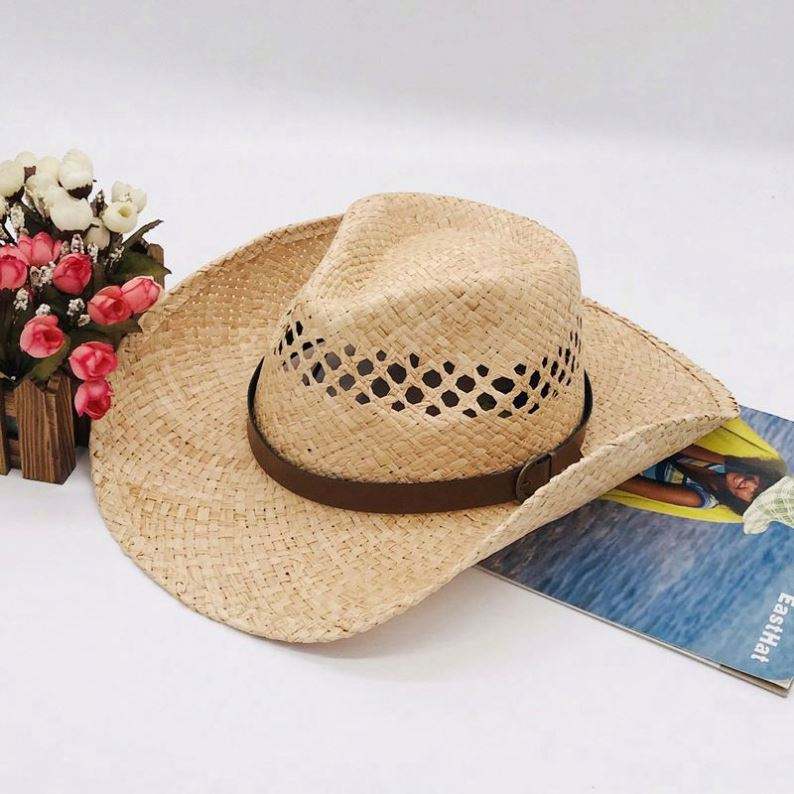 Sombreros de Vaquero Fedora de Rafia Teñida Estilo Western, Novedad de Verano 2020, Sombreros de Paja de Rafia al por Mayor