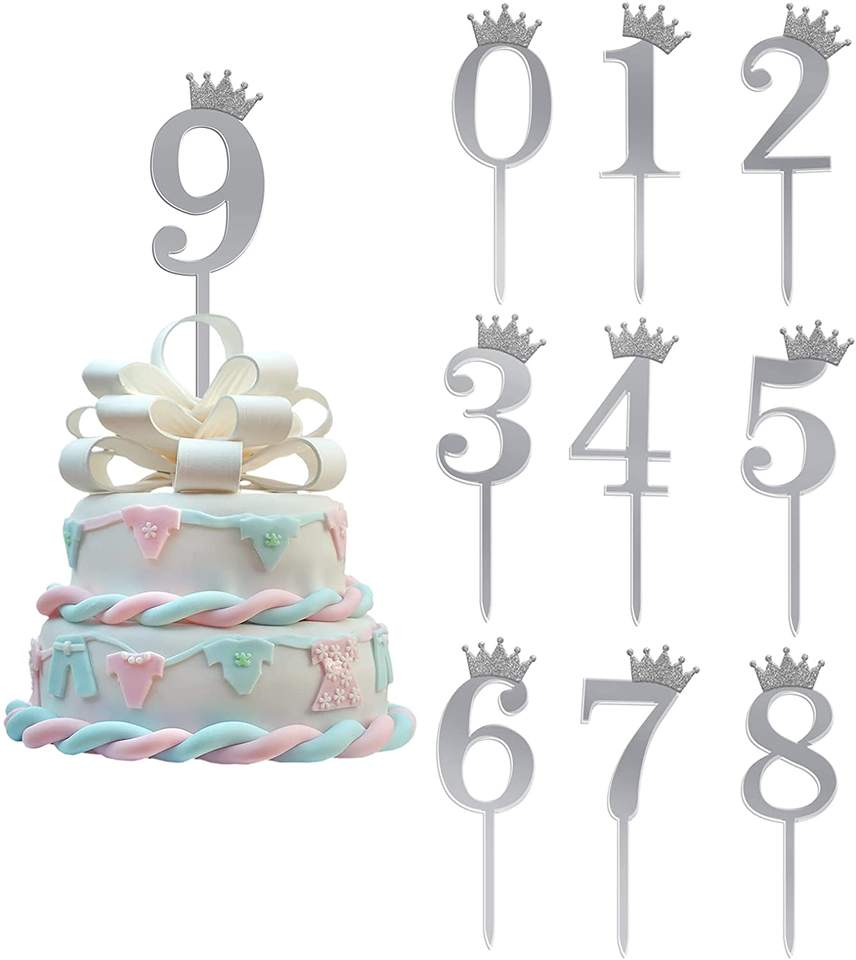 Adorno de Pastel de Corona de Acrílico Dorado y Plateado con Purpurina 2021 con Números del 0 al 9, Adorno de Pastel de Cumpleaños para Graduación