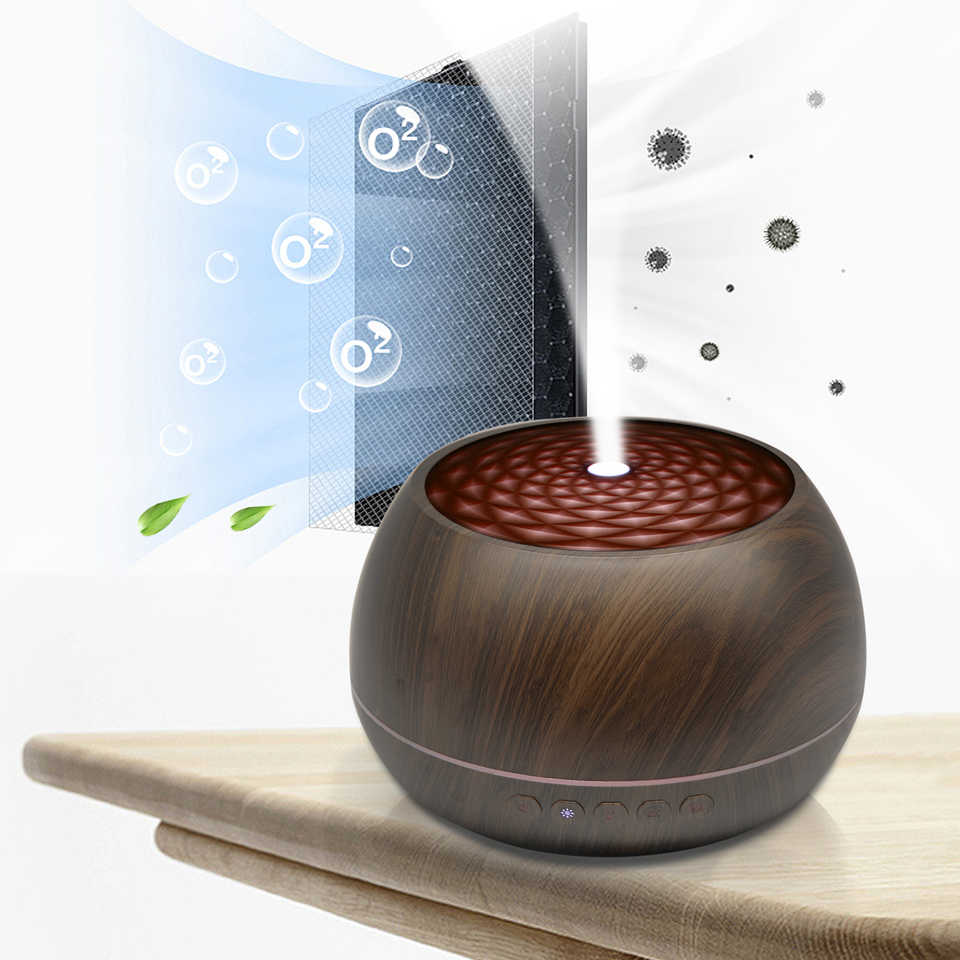 Nuevo Humidificador Difusor de Aroma Ultrasónico de 1000 ml con Control Remoto y Música, con Aspecto de Madera Blanca, en Oferta