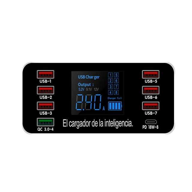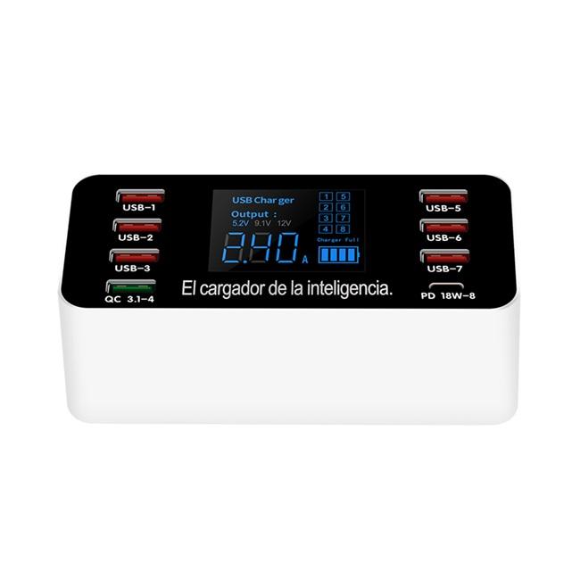 Adaptador de estación de carga con pantalla LED, Cargador usb de 8 puertos, superrápido para teléfono, pad y portátil, 60W, el más vendido de 2021