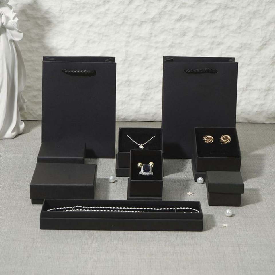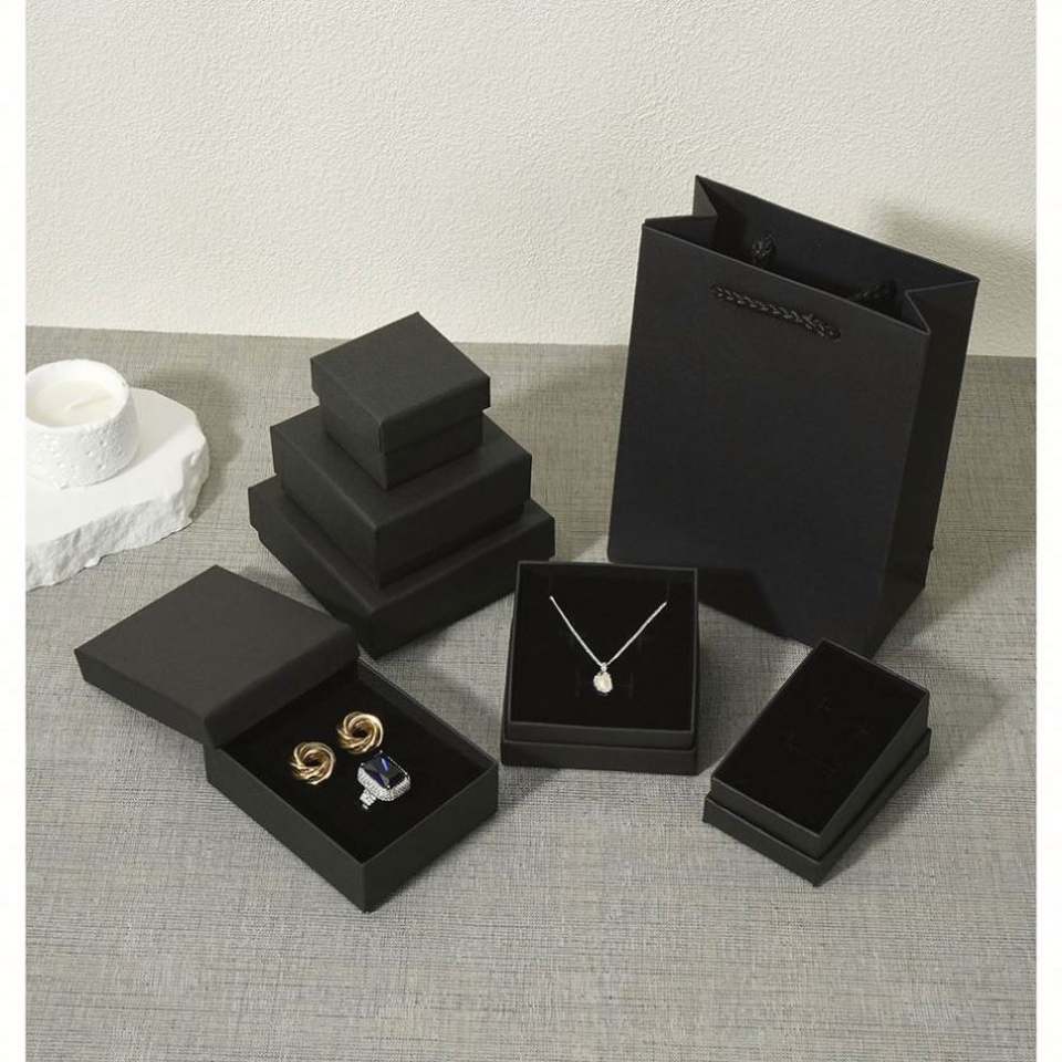Joyero de regalo 2021, exquisito logotipo personalizado, collar de papel Kraft negro, pulsera, anillo, pendientes, más barato con joyero de esponja