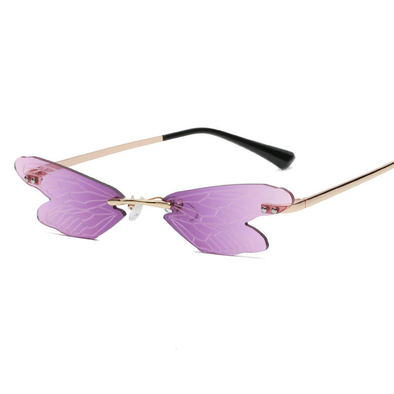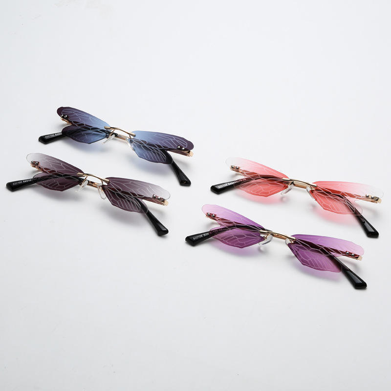 Gafas de Sol de Lujo con Montura Dorada sin Aro para Mujer, Diseño de Moda 2021, Forma de Ala de Libélula, Montura de PC, Protección Solar
