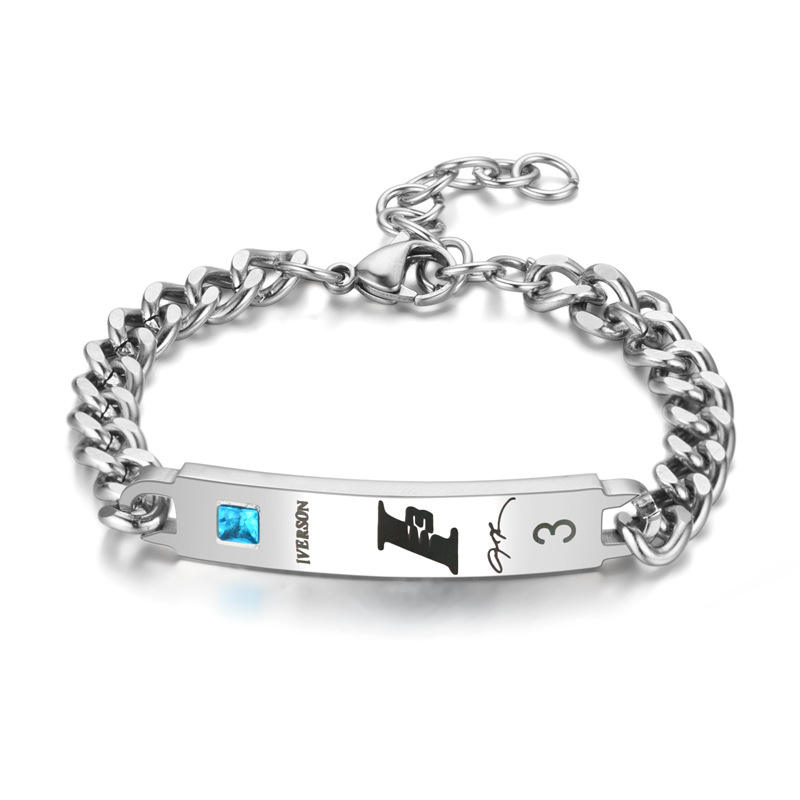 Pulsera de Cadena de Diamantes Ajustable de Acero Inoxidable y Titanio Estilo Pareja NBA 2021 para Hombre