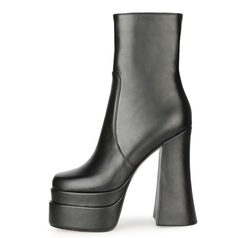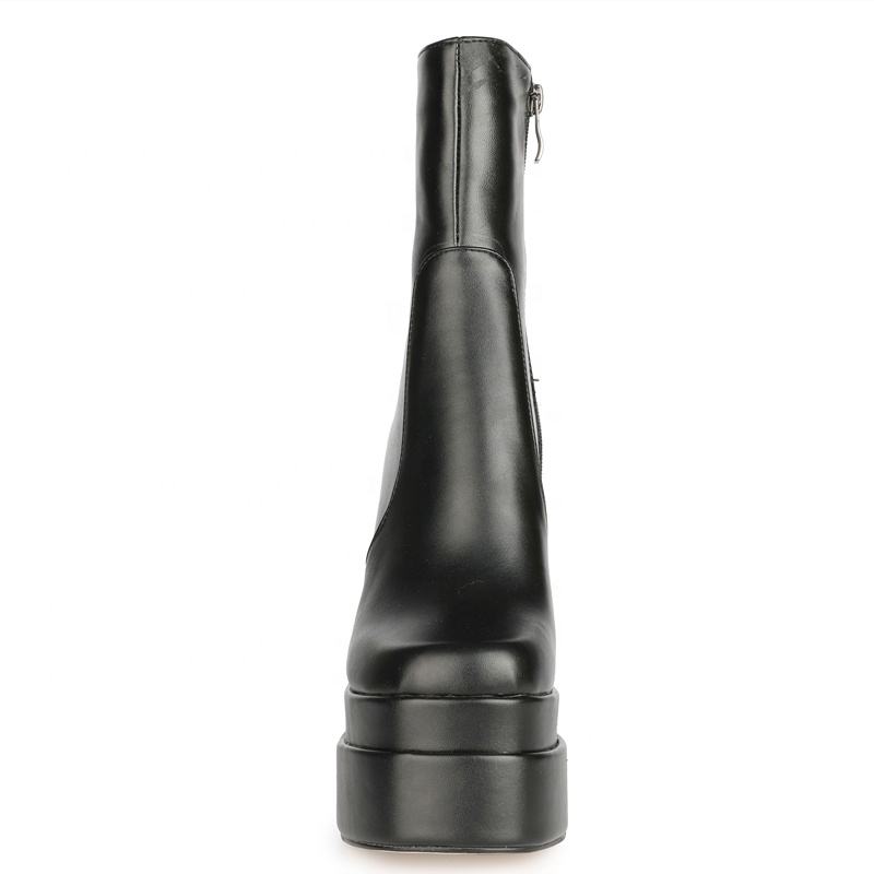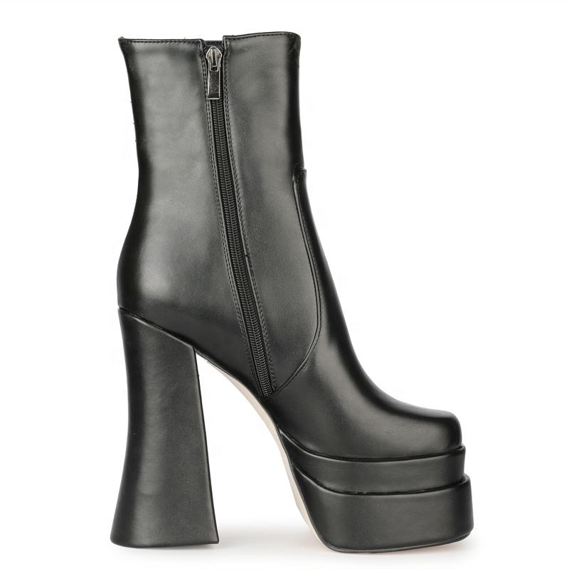 Botas de Plataforma Súper Alta para Mujer, Modelo 2021, Color Negro, Tacón Grueso, Punta Cuadrada, Cierre Lateral, Talla 45