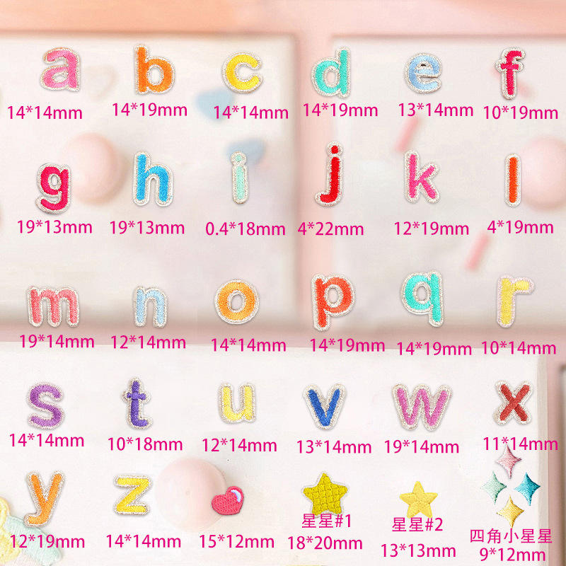 Nombre del producto:Alfabeto inglés Ropa Decoración parche bordado cinta adhesiva