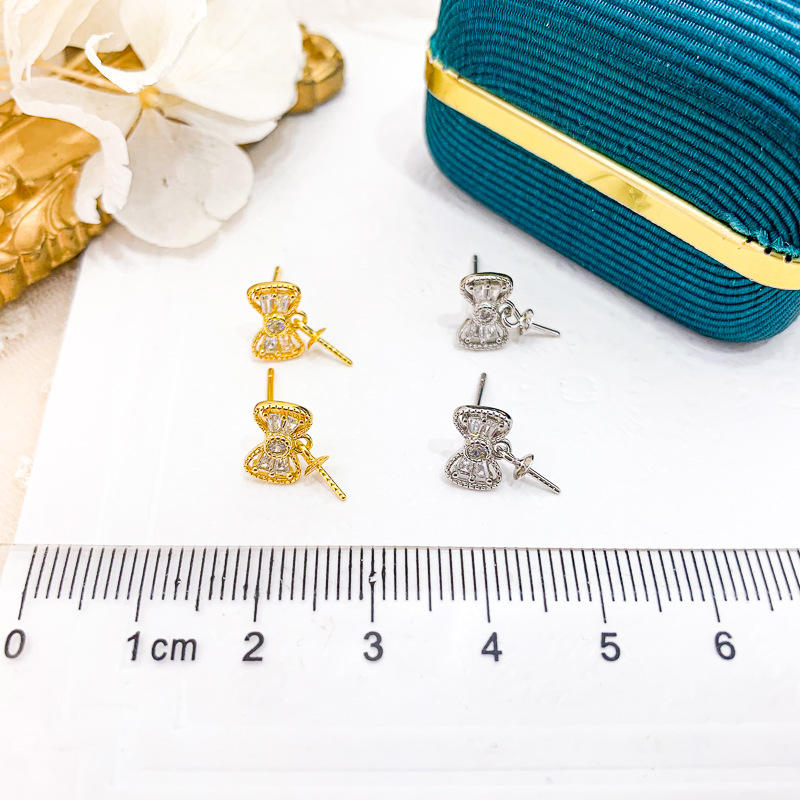 Accesorios de Plata S925 para DIY con Perlas, Bandeja Vacía con Lazo para Perlas Redondas de 7-10mm, Pendientes de Moda 2021 con Joyería para Oreja