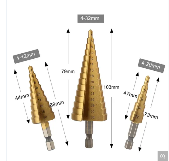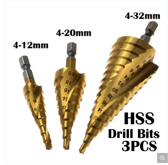 Broca Escalonada para Madera, Herramienta Eléctrica de 3-12 mm, 4-12 mm, 4-20 mm, 3 Piezas, Fabricante