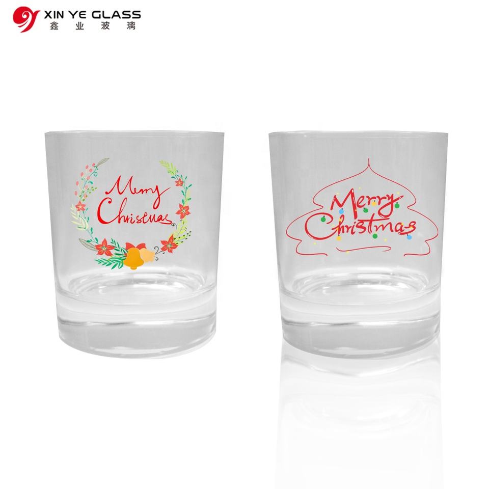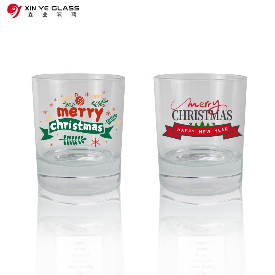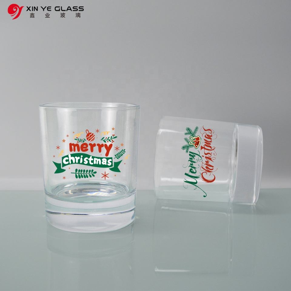 Frascos de vela de vidrio con estampado de árbol de Navidad con logotipo personalizado 2022, 4oz, 8oz, 12oz, suela gruesa vacía con tapa de madera para decoración del hogar