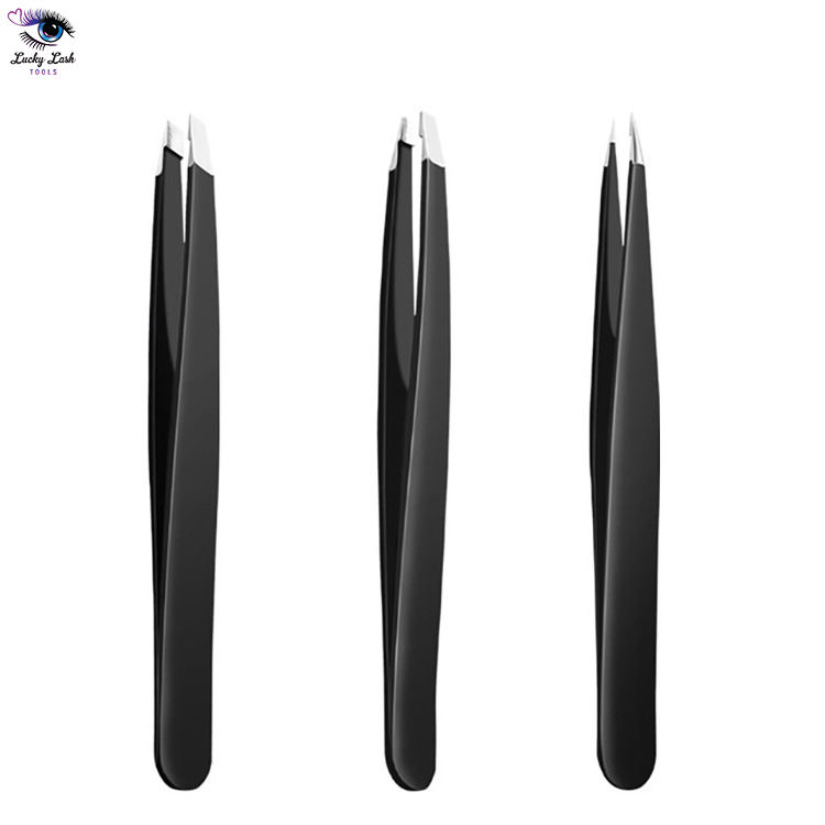 Pinzas para cejas de acero inoxidable sólido con etiqueta personalizada 2022 con punta inclinada herramienta de belleza de alta calidad de LUCKY LASH TOOLS