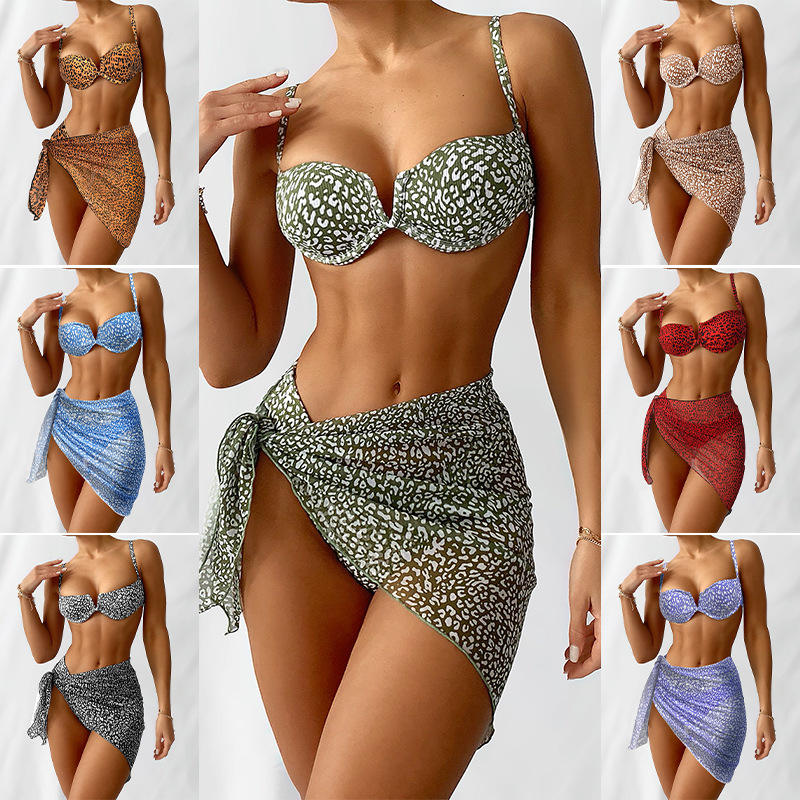 Traje de baño de 3 piezas con estampado de leopardo para mujer, bañador Sexy de varios colores, estilo europeo, 2022