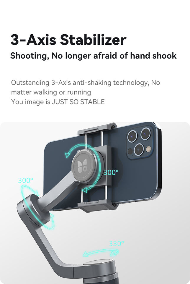 FUNSNAP Capture Plegable 3 Ejes Handheld Gimbal Estabilizador Smartphone Capture Selfie Stick para Xiaomi iPhone 12 11 Huawei