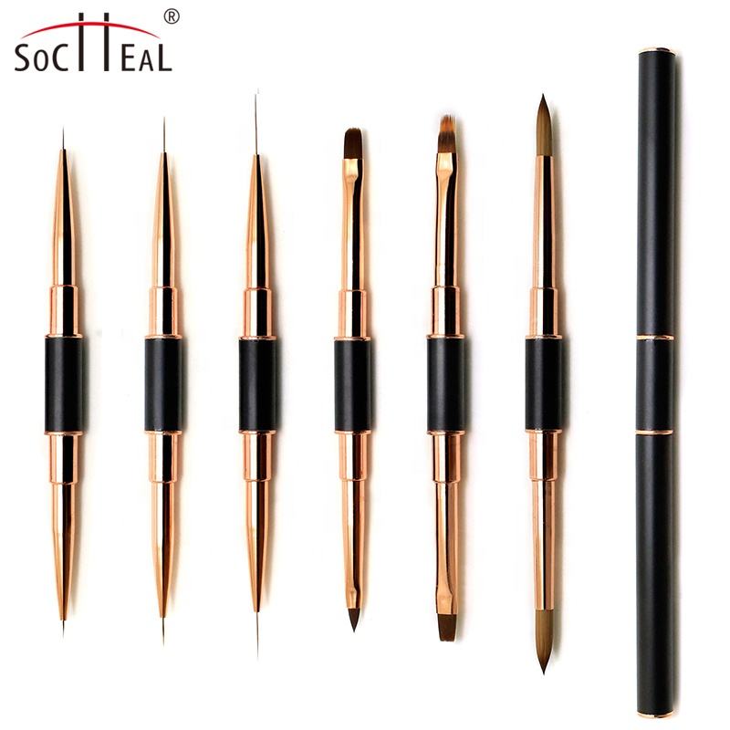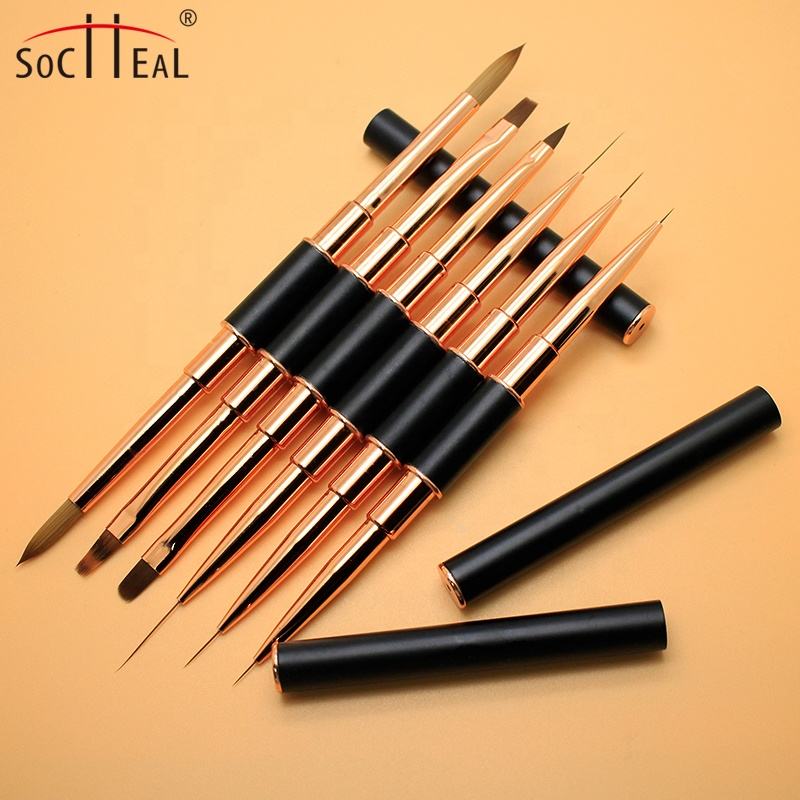 Mango negro de alta calidad, tubo de oro rosa, pintura de doble cabeza, Gel 3D, acrílico plano, 6 uds, juego de pinceles para uñas para arte de uñas