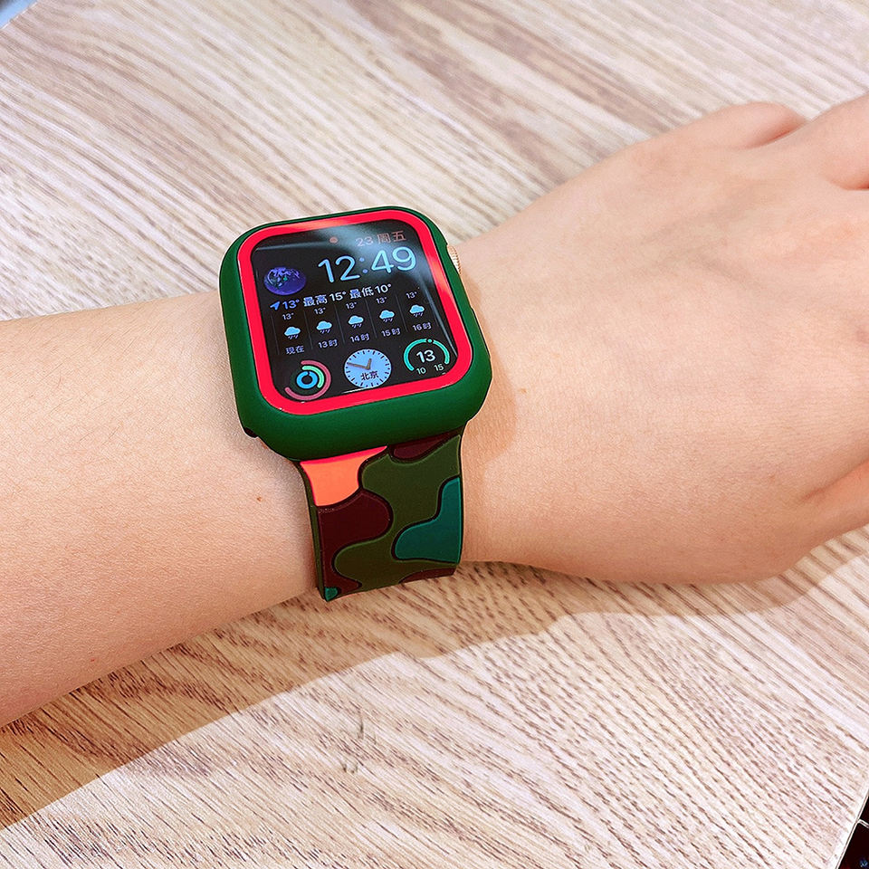 Funda Multicolor con correa de silicona para Apple Series 7, 2 en 1 funda protectora de camuflaje a la moda, novedad de 2022
