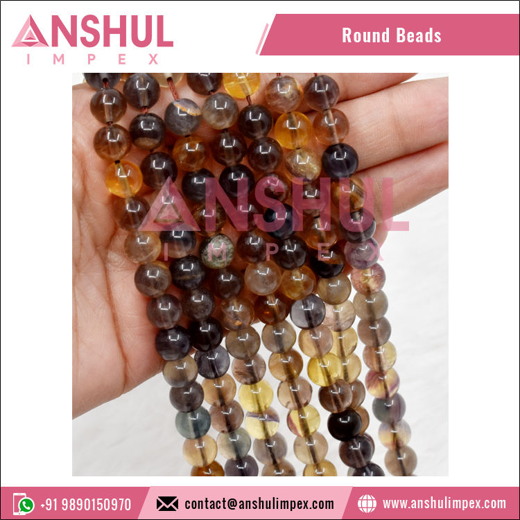 Nuevo Diseño de Alta Gama, Logotipo Personalizado Disponible, Cuentas Redondas de Fluorita de Miel AAA de 8 mm para Pulseras, Modelo RB-HFL-AAA-8 de Anshul Impex