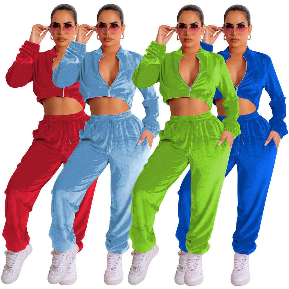 Nuevo Diseño 2022, Chándal Deportivo de Dos Piezas para Mujer, Etiqueta Privada Personalizada, Colores Sólidos, Terciopelo, Transpirable y Ecológico