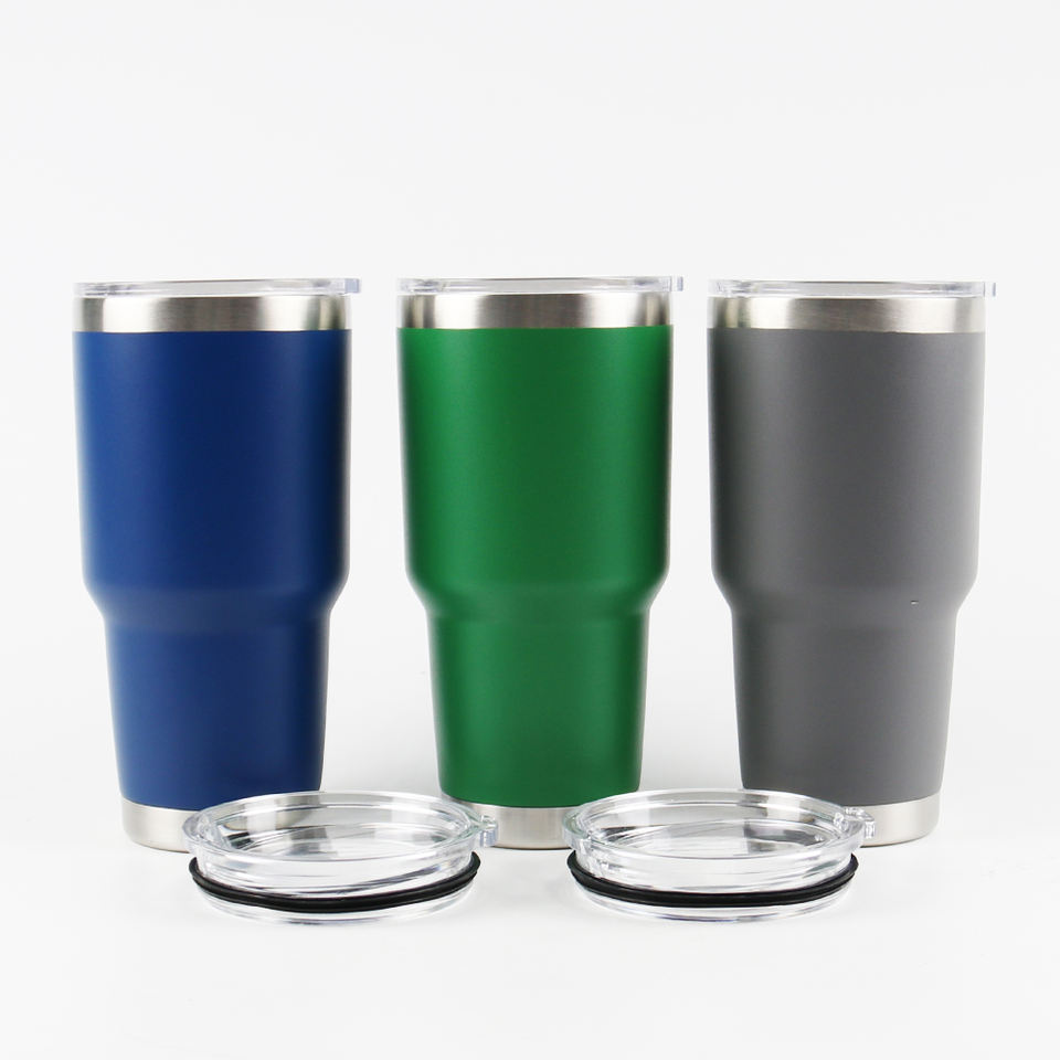 Detalles del embalaje:New Design Double Wall Stainless Steel Powder Coated Vacuum Insulated Travel Mug Car Tumbler With Clear Lid